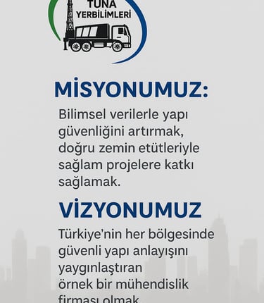 Şirketimiz 2006 yılında kurulmus Türkiye'nin her bölgesinde zemin etüd çalısması yapmıştır. kurumsal yapısıyla siz değerli müşterilerimize hizmet vermekteyiz.